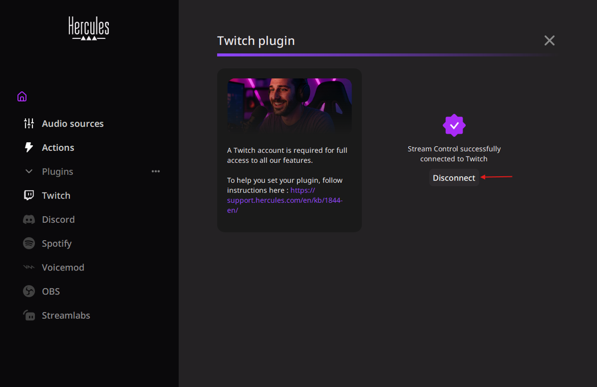 5. You can also disconnect from Twitch by pressing “Disconnect” on Stream Control